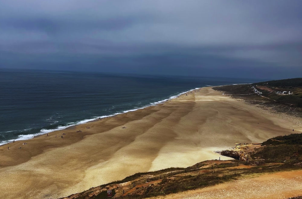 Na deze eerste periode huurden we een auto en reden noordwaarts. Met natuurlijk een stop in Nazaré. Wie The 100 Foot Wave heeft gezien, snapt waarom. We wisten dat er in de zomer geen gigantische golven zouden zijn (sterker nog, de zee was verrassend kalm), maar het uitzicht vanaf de vuurtoren was wel heel bijzonder.